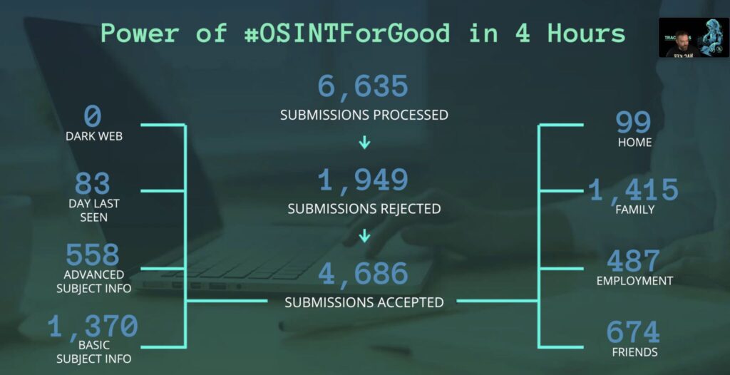 Want to participate? You can find more information about this event at www.tracelabs.org. #OSINTforgood.