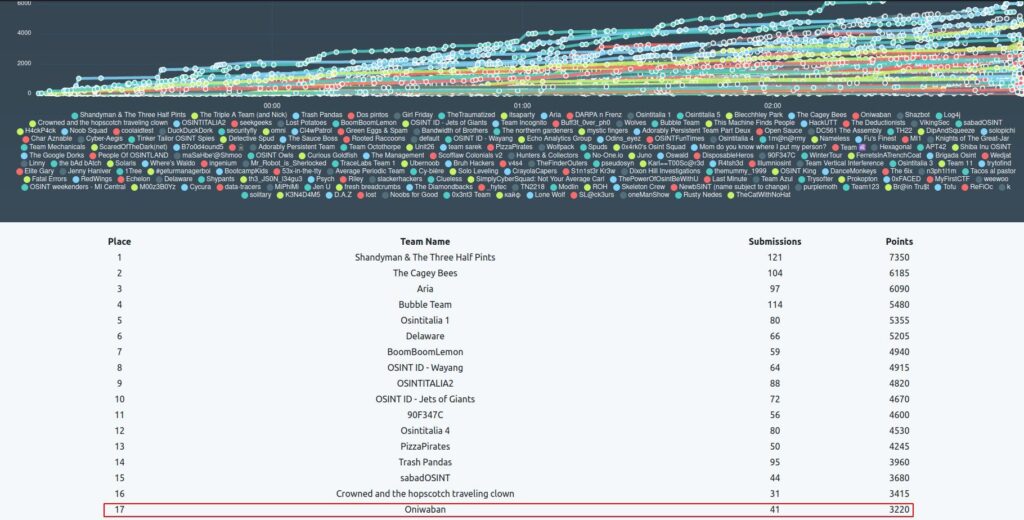 Our team lovingly calls the day after CTF the “OSINT hangover.” I can attest to plenty of lost sleep that night as I mentally replayed missed leads and pivots. But the challenges and frustrations, and the minimal entry fee (a whopping grand total of $10USD), were well worth the opportunity to ply our trade to help families who might not be able to hire professional investigators.