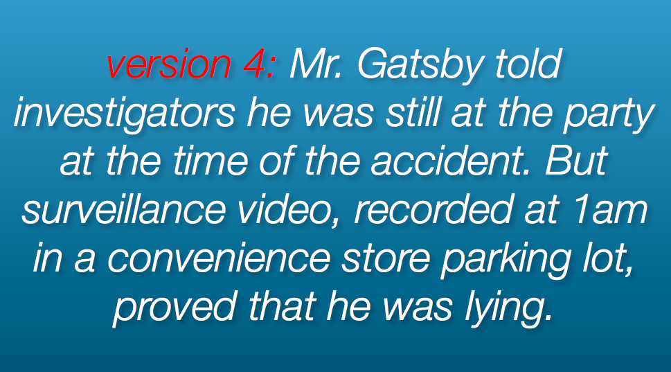It’s not a beautiful piece of writing, but at least it’s clear. We know who did what, when, and why it matters to the case.