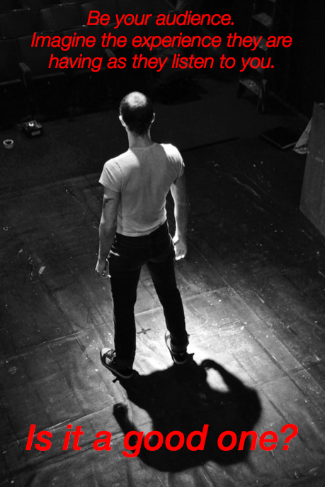 Put yourself in their shoes. Be your audience. Imagine the experience they are having as they read or listen. Is it a good one?