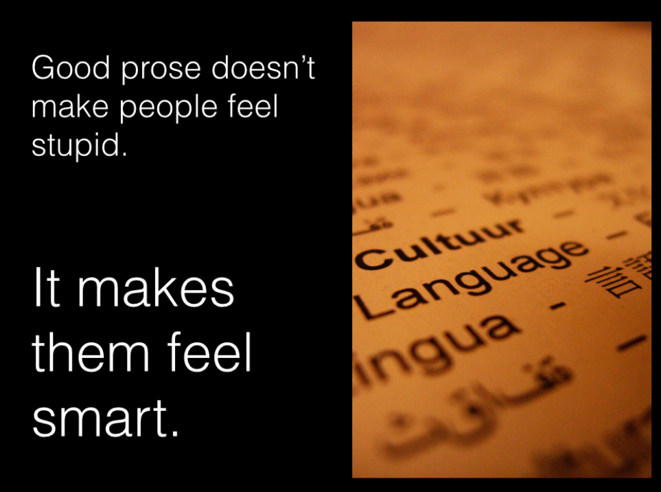 Effective prose isn’t about showing off, pretending to be more sophisticated than you are, or making other people feel stupid. In fact, it’s just the opposite: Great writing makes people feel smart, because it’s clear and easy to understand.