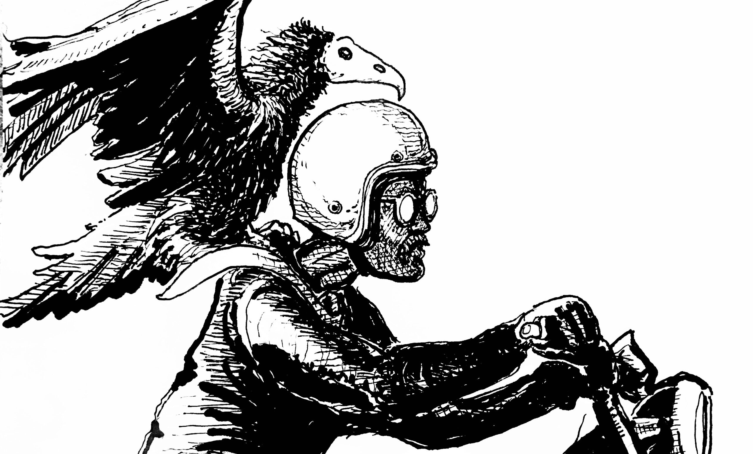 When he entered the freeway, however, he encountered a sea of bumper-to-bumper traffic. He veered onto the shoulder to pass, but some of the cars pulled into his path and opened their doors so he couldn’t get by. He returned to the lane and waited with the rest of the vehicles, his feet planted on the asphalt, the engine idling. Sweat poured down his face. The traffic inched forward at a snail’s pace for forty-five minutes, only dispersing when he was within a couple exits of the airport. Once he had an opening, he twisted the throttle, shot around a gaggle of cars, upshifted all the way to fifth, and zoomed into the airport loading-zone with only a few minutes to spare. This airport had no Evel Knievel ramp, so he had to park his bike outside the fence and wait in a security line with all the other travelers. By the time he made it to his gate, the plane had long ago departed.
