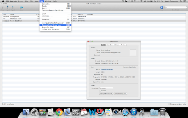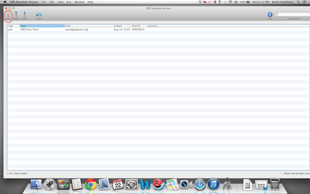 After installation, find and open your PGP key ring (called GPG Keychain Access with Mac GPGTools).