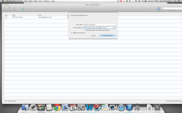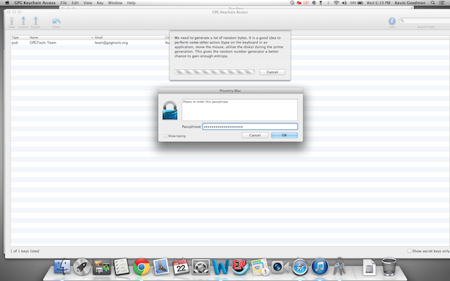 Before PGP Keychain generates your key pair, you’ll have to assign a passphrase. You’ll use this every time you sign an email or decrypt a message.