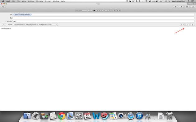 To encrypt an email, simply click on the padlock icon. In Mac’s Mail application, this is directly above the text box on the upper right hand corner. The padlock appears unlocked if the message is unencrypted and locked if the message is encrypted.
