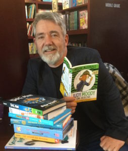 “I’d jump on my bicycle and go buy a book,” says Peter Reynolds, world-renowned children’s book author and illustrator. “I was trying to work my way through the series.” I’m speaking with him at The Blue Bunny, the cafe, toy store, and children’s bookshop that he owns in Dedham, Massachusetts. It’s a cold December afternoon, the grey-slatted Colonial houses and crunchy leaf piles glowing gold in the slanting winter sunshine. A shiny blue bunny statue that kids can climb sits outside the store, in a row of historic storefronts trimmed with green awnings. And Reynolds’ bookstore is a hub of this tight New England community, with announcements boards offering dog walking services, book groups, and Hanukkah parties—while the bookcases offer stories.