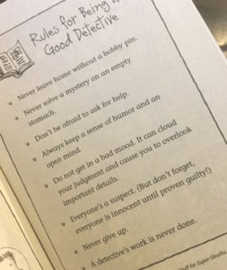 Reynolds has always loved mysteries, he tells me, as we stroll through the children’s detective books (listed below) “Stories have a lot to do with logic … The problem is a piece of string. There’s a knot somewhere in the story. You untangle the knot through your characters.