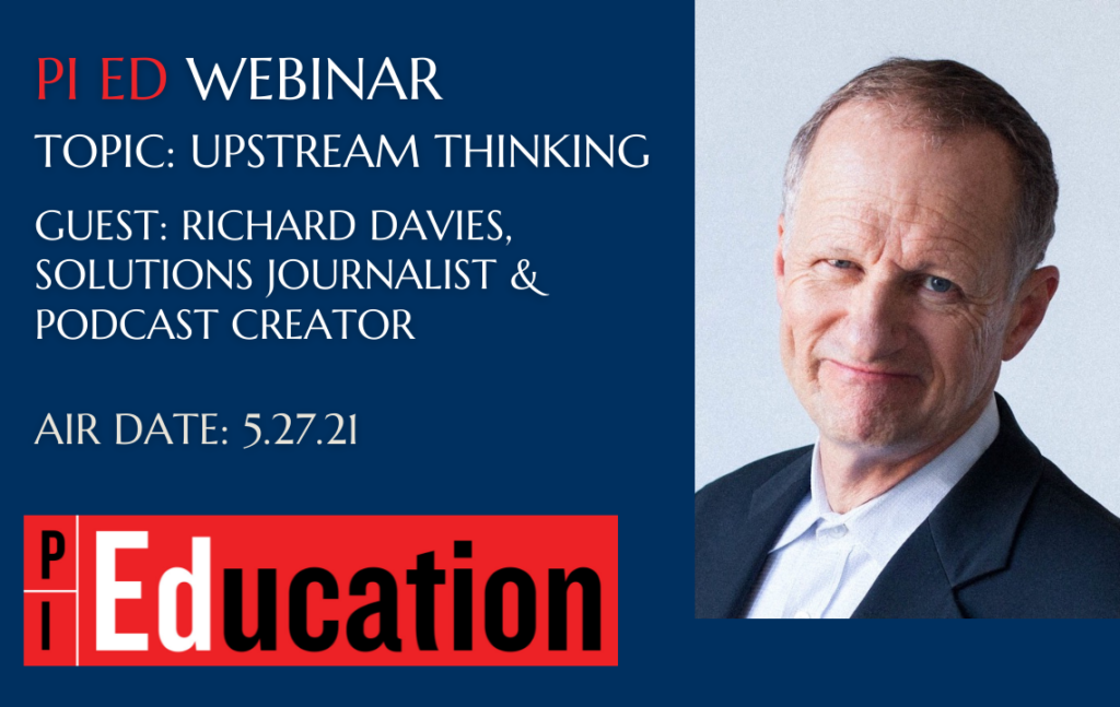 In our May webinar, Hal hosts Richard Davies, a solutions journalist and “How Do We Fix It?” podcast creator, to talk about upstream thinking and a problem-solving mindset.