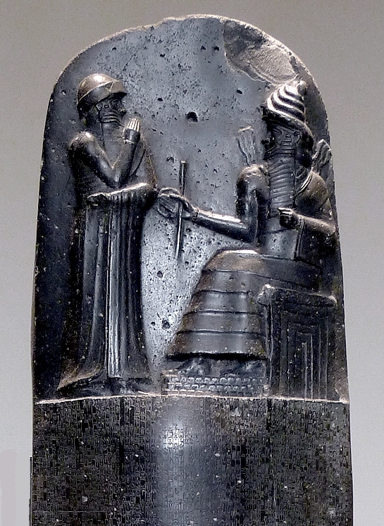 His famous legal code is inscribed in cuneiform on this famous four-ton stone stele (topmost part pictured) which now stands in the Louvre. Atop the stele is a relief sculpture of Shamash, the Babylonian god of justice, presenting Hammurabi with the sacred laws, represented by a scepter and a ring, symbols of power.