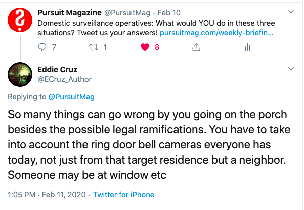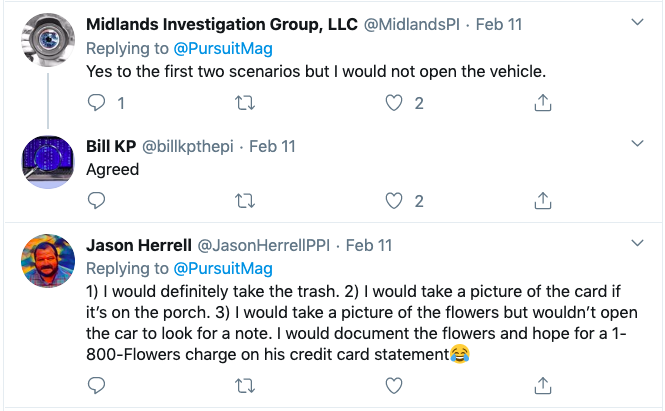 Crowdsourcing is real. Every time we post a question or a scenario and solicit feedback to the broader investigative crowd, I’m impressed. The comments we’ve gotten in response to the weekly briefing this week have been fantastic.